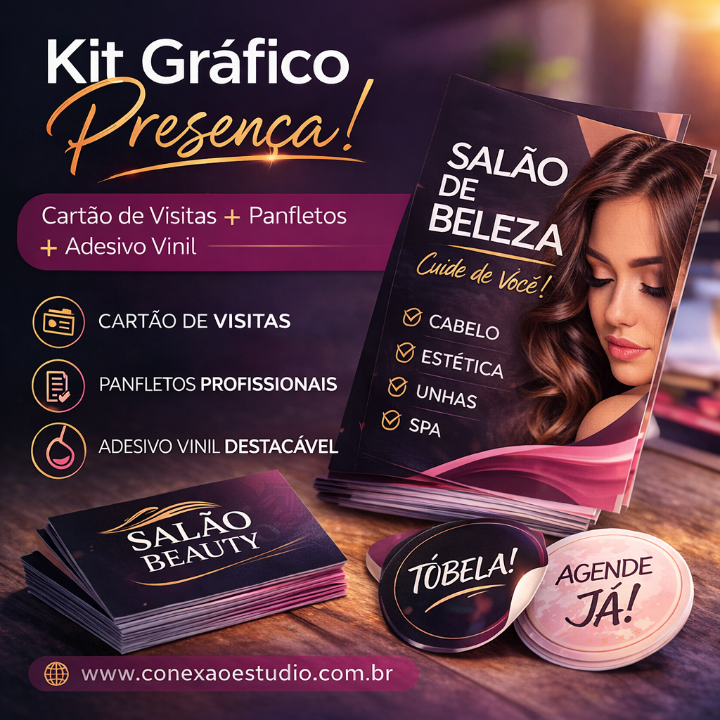 O Kit Presença foi desenvolvido para empresas que estão iniciando suas atividades ou desejam fortalecer sua presença no mercado com materiais gráficos profissionais e estratégicos.